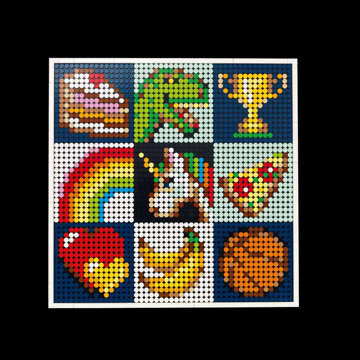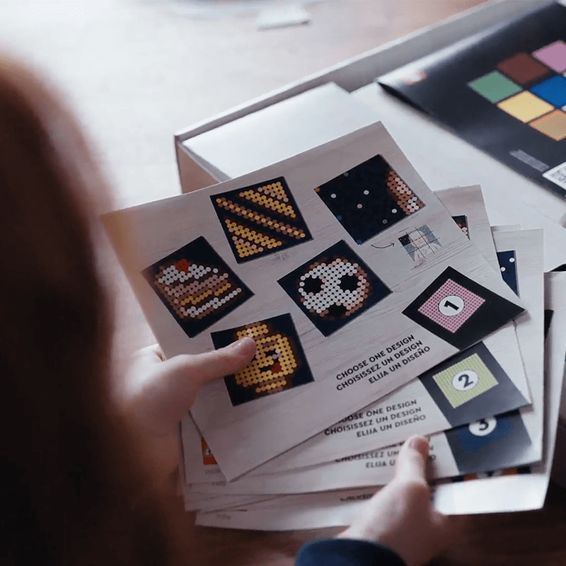 Spend social time together with family or friends with this set, which features a simple, buildable palette to color-match tiles and 9 image options in each of 4 themes: Food, Patterns, Icons and Interests. Pick images to make, then put them together to form one art piece. You can also work together to create a large image of the iconic minifigure.